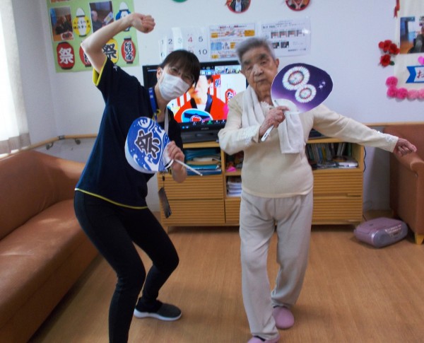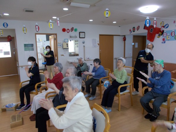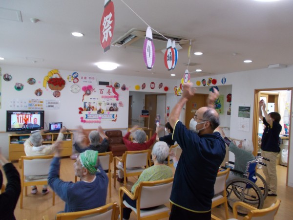 みなさんと盆踊りの曲に合わせて体操をしました。