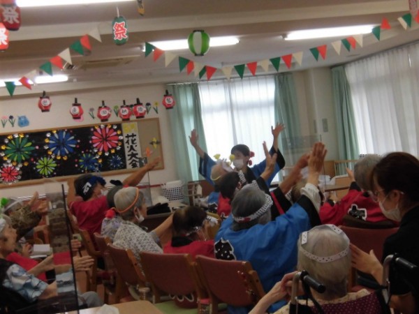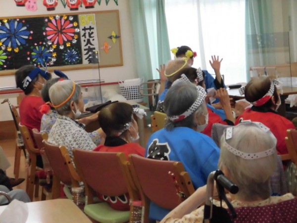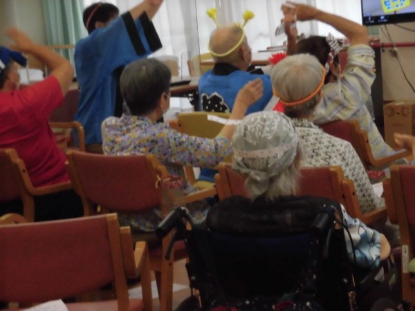 盆踊りとなると、通常は立って踊るという感じになるかと思いますが、こちらは座ってでもできる盆踊りという事で、皆様沢山リズムに合わせて踊られました♪