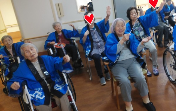 ご入居者様方も、ハッピにうちわでムード満点!