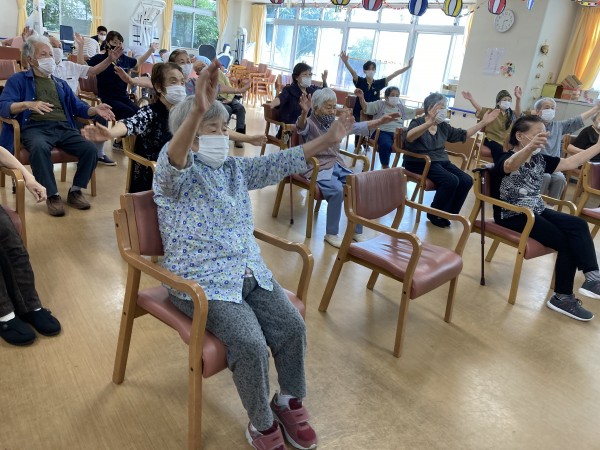 ご利用者様皆さん、とてもいい笑顔で踊っていました。