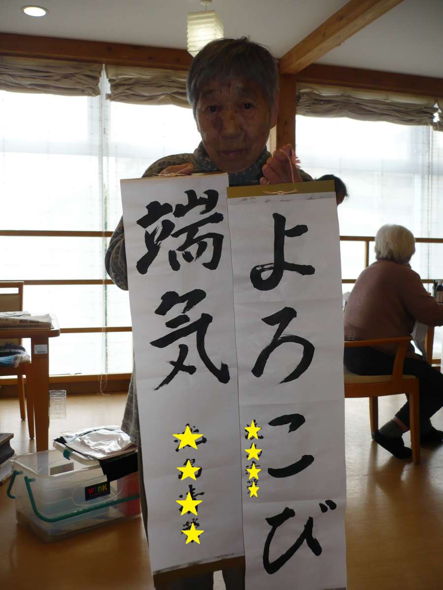 すこや家・真鶴でもボランティアの先生により、書き初めをしました( ..)φ