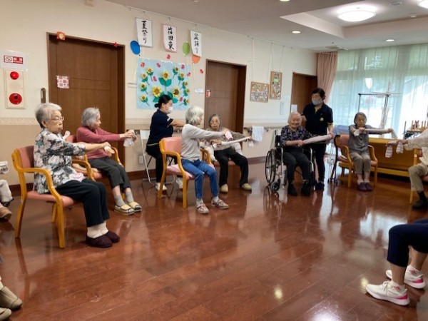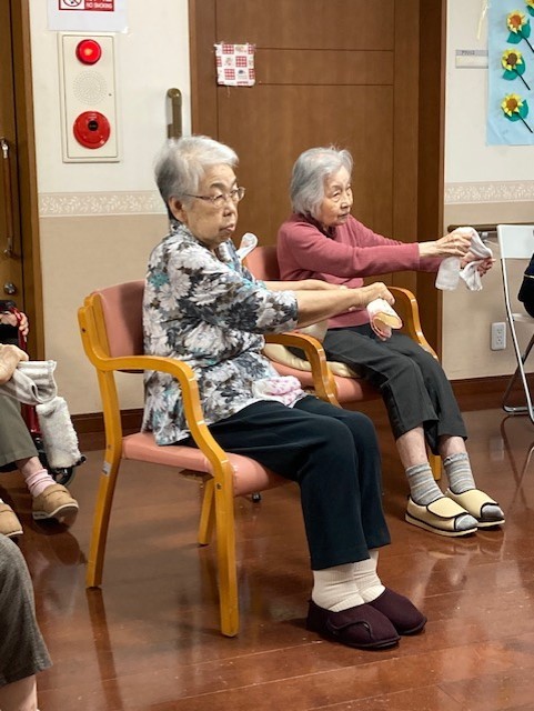 入居者様、職員さんと一緒になって真剣に取り組まれていました。
