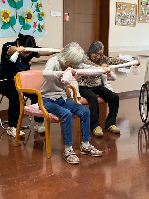 続いてタオルを使っての体操を行いました。