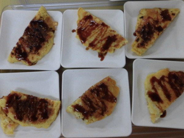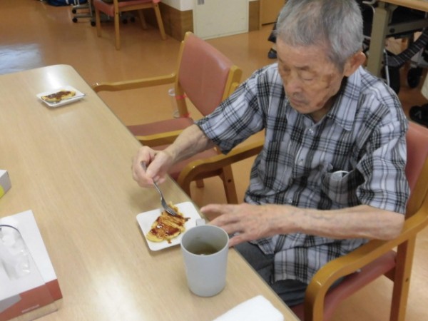 ヨーヨーすくいの後は、これはまたお祭りには欠かせない屋台風味のおやつの時間です。手作りでのお好み焼き風を皆様と一緒に召し上がりました♪お疲れ様です!(^^)!