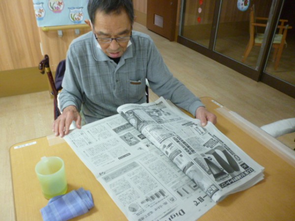 そして、新聞を読んだり、助け合いながらパズルを組み立てたり、問題を解いたり、、、。思い思いに過ごされています。そんなこんなでアッという間にお楽しみのお昼ご飯です!今日のメニューは何かな?