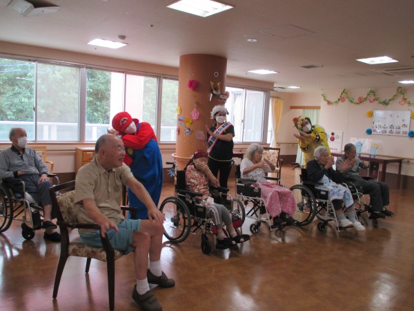 初めて、「大東京音頭」という盆踊りを行いましたが、ご利用者様はもちろん、職員も着ぐるみを着、盛り上がりました(^^♪。