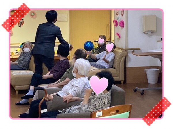 ボールを持ってご利用者様の方へ。