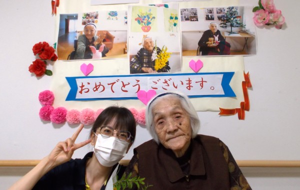 先日、ご入居者様が100歳を迎えられ、皆さんと一緒にお祝いをしました!