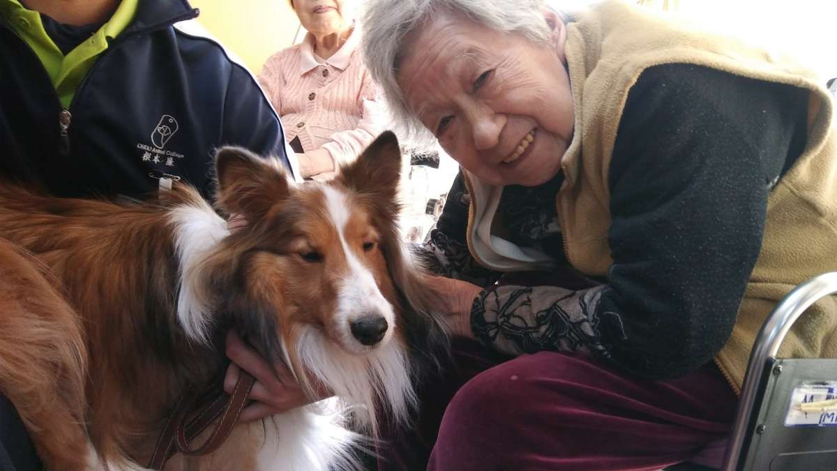 かわいいプードル達から、大きなゴールデンレトリバーまで、たくさんの犬とのふれあいに入居者様も思わずにっこり♪