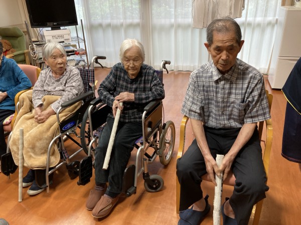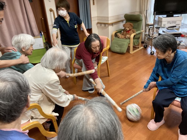 雨続きで利用者様に元気に過ごしてもらうのに1F2Fの利用者様対抗試合をしました!