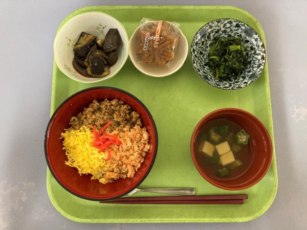 お楽しみ献立!!三色丼です。