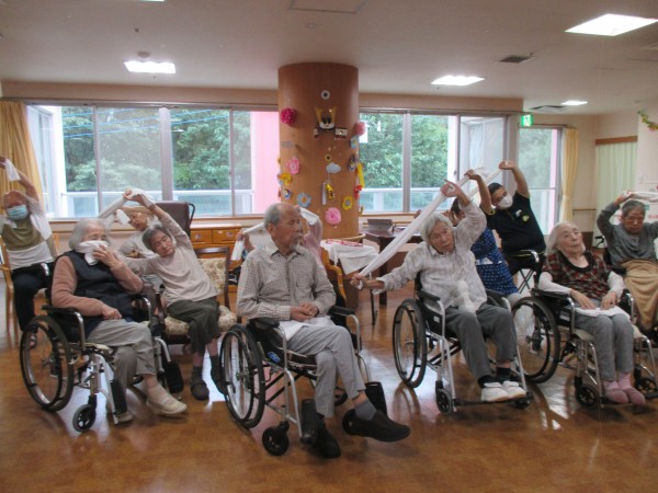 タオル体操は、新しい体操の為、始まる前から、皆さん、どんな体操なのかとわくわくしておられました(^^♪。体操が始まると、皆様、楽しんでおられました(^^)/。
