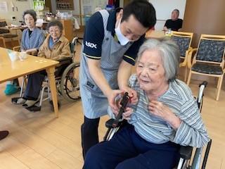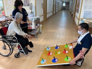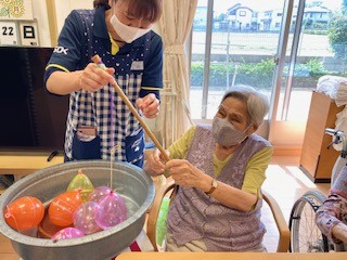 「輪投げ」と「ヨーヨー釣り」のセットとスタッフが移動して、入居者様は座席に座ったまま行えます。
