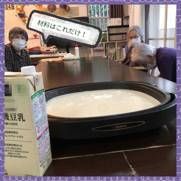 豆乳をホットプレートで温めて、膜が出来たらお箸ですくい上げます。