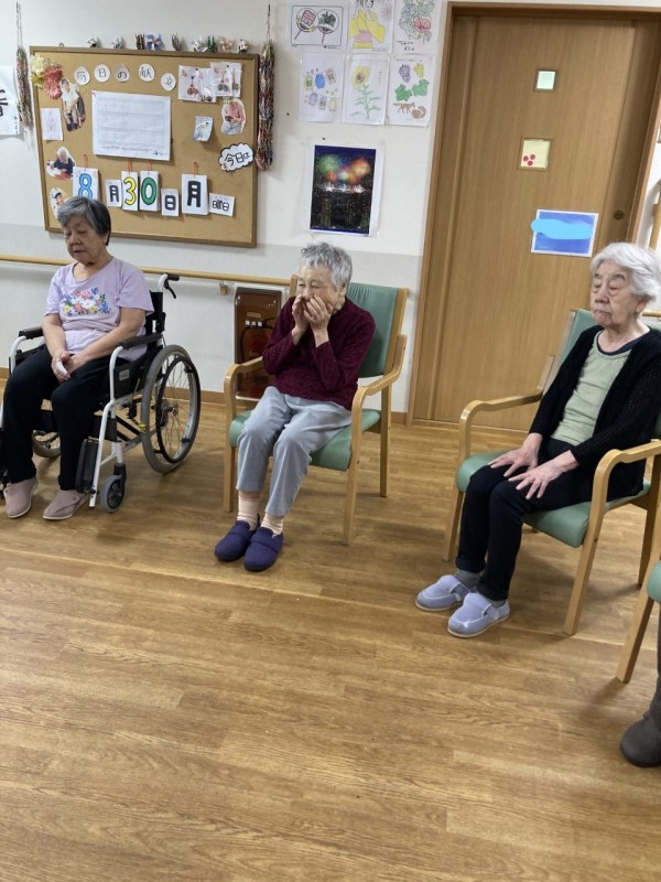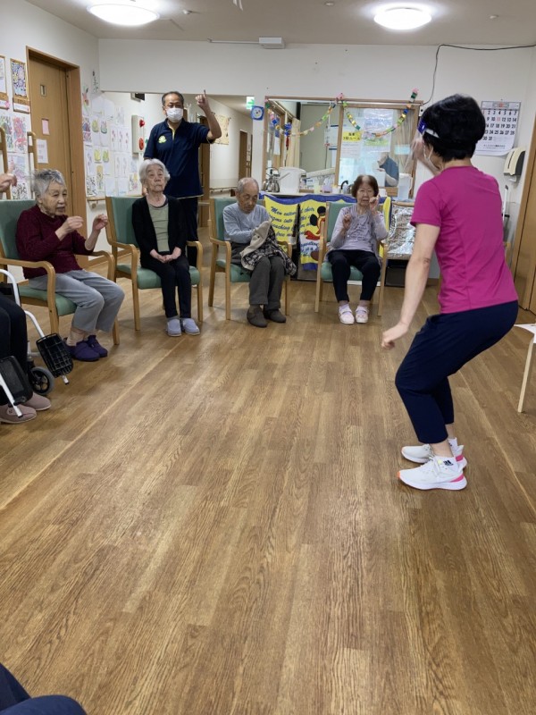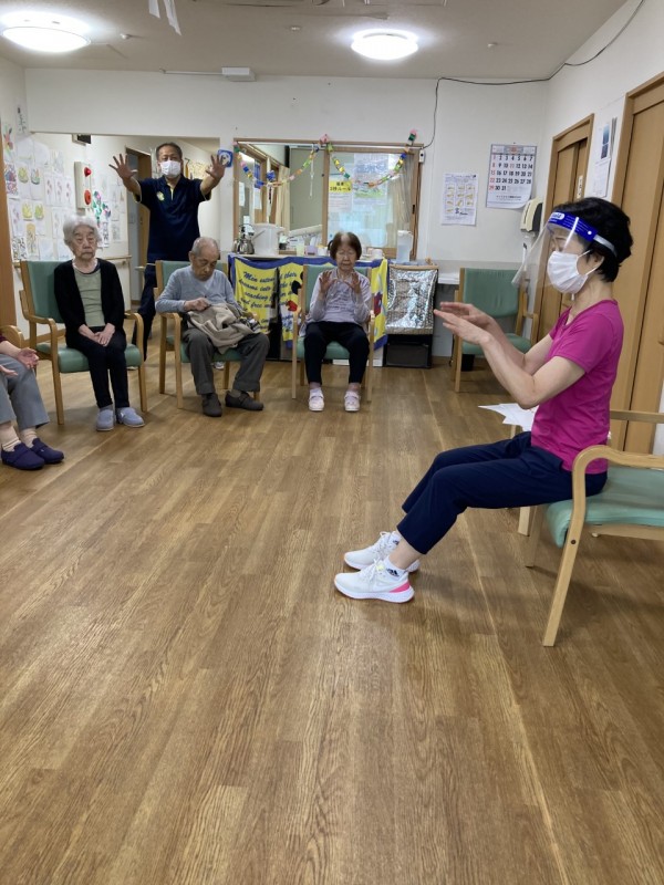 ご利用者のみなさんとともに、私たちスタッフも真剣に取り組みました!・・・というのも、結構この運動は難しいんです(笑)