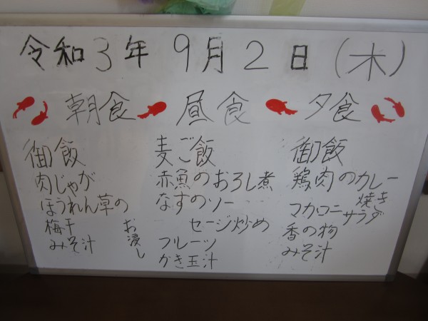 ★☆介護付有料老人ホームみんな家三橋6丁目の昼食令和3年9月2日(木)曜日