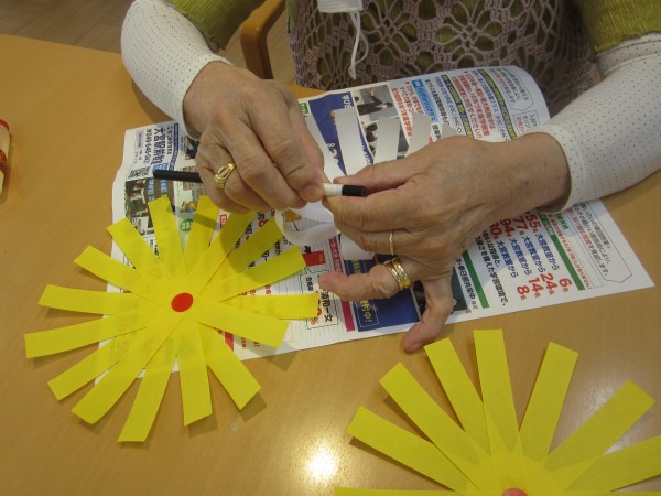 ★☆菊(キク)の折り紙、作成レクリエーション♬(^^♬ 『みんなの家・三橋6丁目』☆★