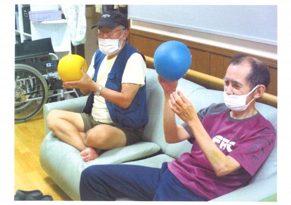 当社オリジナルのNõAエクササイズのご様子です(*^^*) この日も、手足を大きく動かして脳の活性化を計りました♪ その後はボールを使った運動です(≧▽≦) 毎回メニューを変えて、ご利用者様に楽しみながら行っていただけるよう心掛けています☆ 是非皆さまもデイサービスセンター遊・川越南大塚で毎日楽しく体を動かしましょう!!