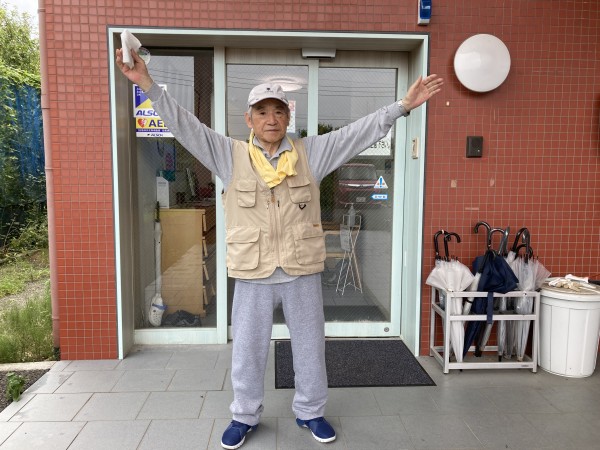 先週、雨の合間にお散歩チャンスがやってきましたので、また降り出すのを心配しつつ大急ぎで二組のご利用者様をお散歩にお誘いしました。まずは殿方1名様。この方は外を歩くのが大好きで、歩きたい歩きたいと日々仰っていたのでいの一番にお連れしました。