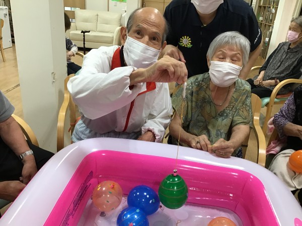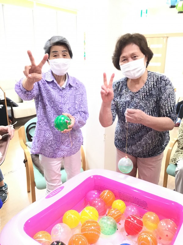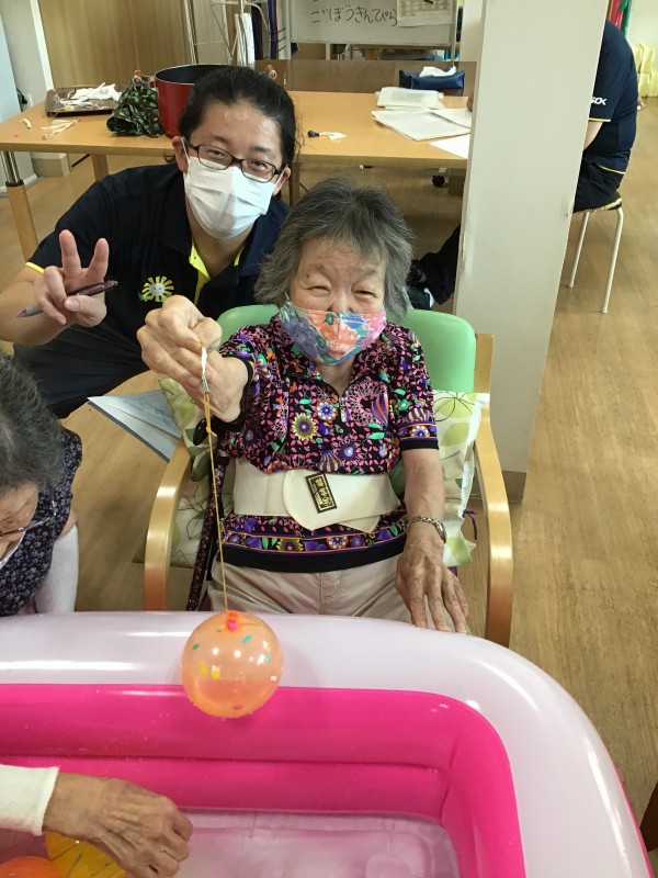 盆踊りがリモートで開かれたので、盆踊りにちなんで、ヨーヨー釣りをやりました。