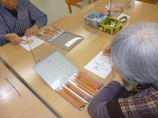 の下絵にも”秋を感じる”色を塗っていただきます。