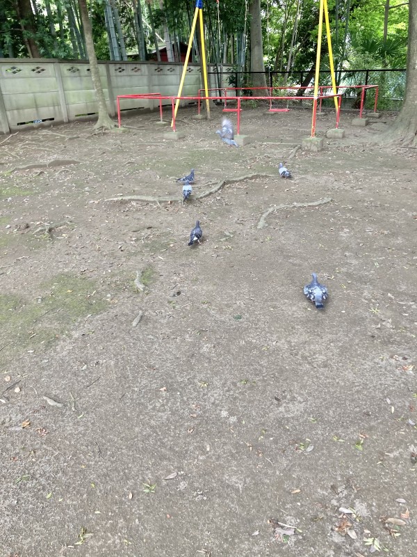 お参りした後、ハトの集団と出会い皆さんと眺めていました。