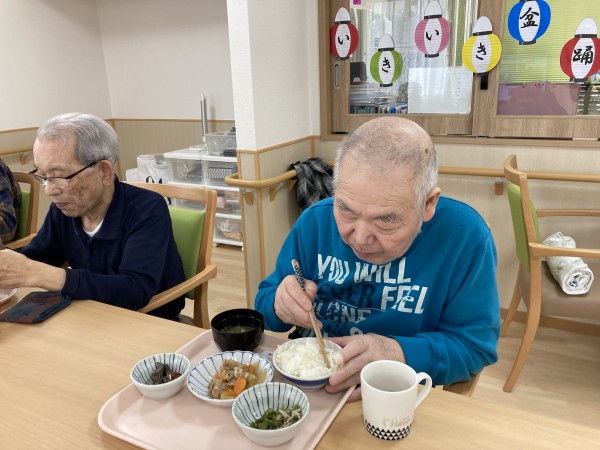 一人の入居者様にお食事をお出しすると「うまそうだなぁ」と仰って