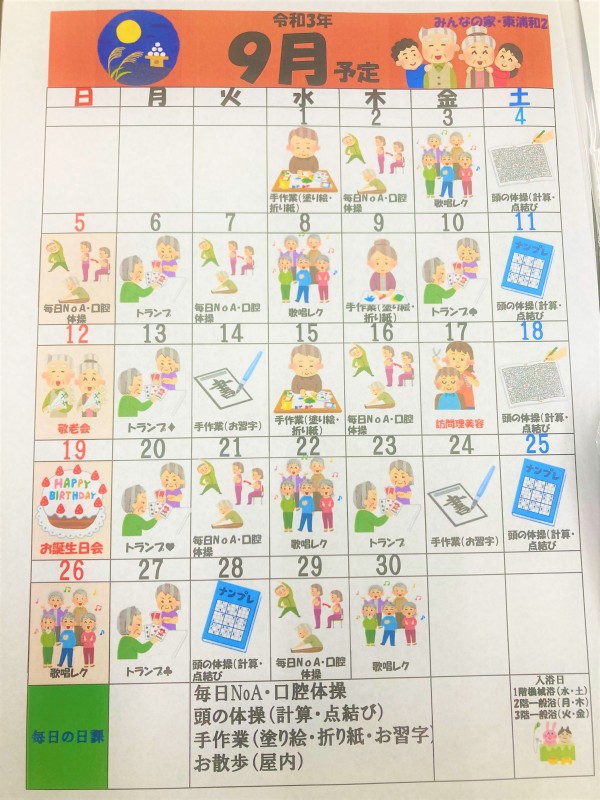 みんなの家・東浦和2 ~9月のレクカレンダー~