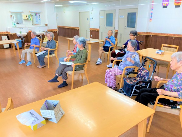 体と心をほぐすために先ずは軽い運動を行い、その後、皆様で大東京音頭を歌いました!(*^▽^*)