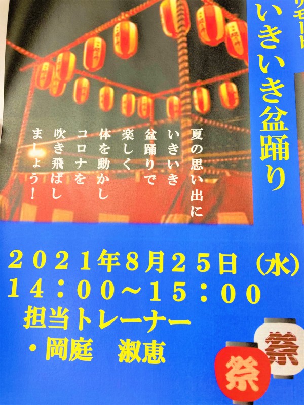 外に出るのが難しい今、少しでも多くの皆様と盆踊りを楽しまれるように岡庭トレーナーが盛り上げてくれました(*^▽^*)