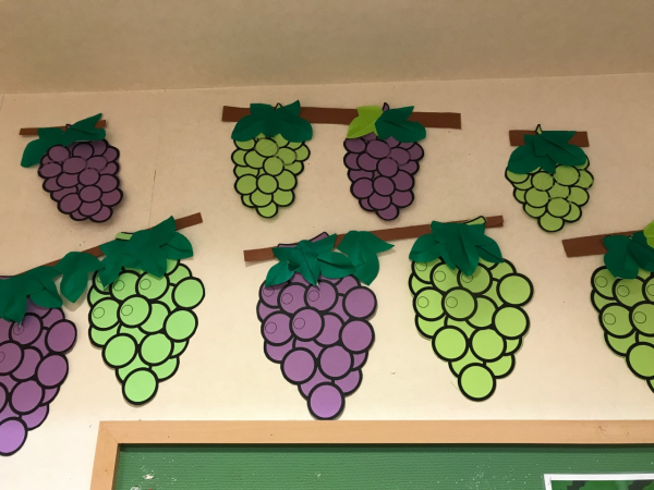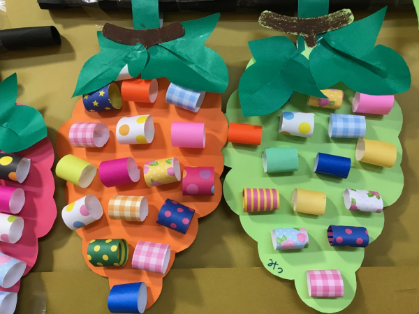 みんなでおしゃべりしながら作った、一面に並んだブドウは壮観です。