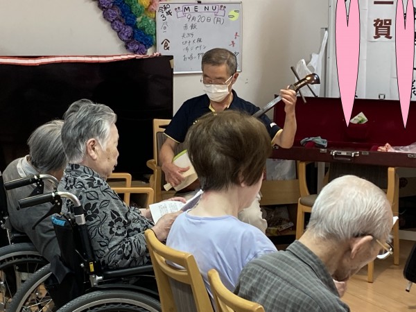 ★☆敬老の日に令和3年・敬老会を実施♫三味線演奏会♪木村光陽ホーム長!熱唱♬(^^♬