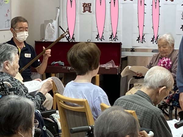 ご利用者様の皆様も三味線に合わせて大合唱♪