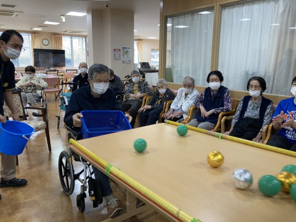 おたからキャッチゲームは上から転がって来るボールを、籠でキャッチするゲームです!