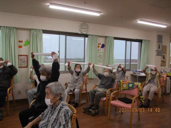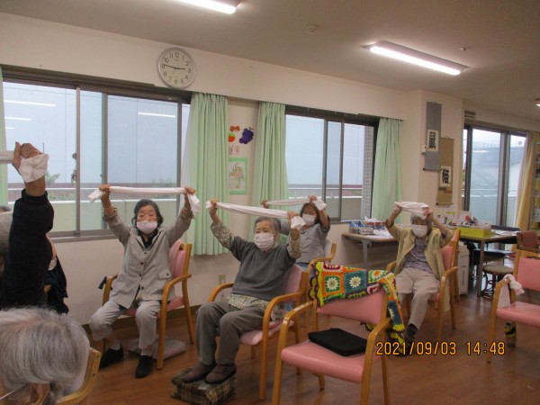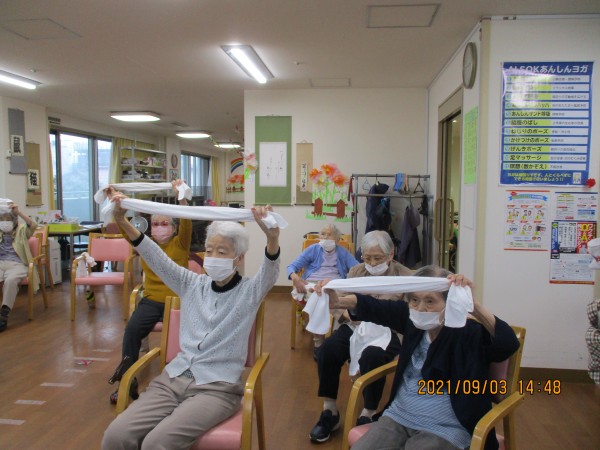 Zoomを使用して今回もタオルを使って体操していきます(^_-)-☆