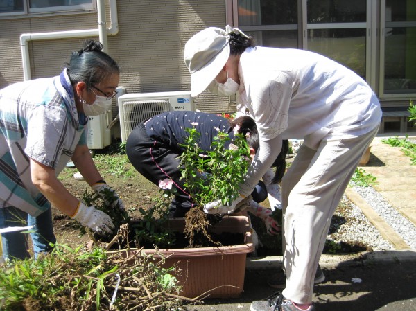 こんにちは!グループホームみんなの家・あきがせの介護ブログです。よろしくお願いいたします。夏も終わりを迎え今日は花壇の手入れを行いました。