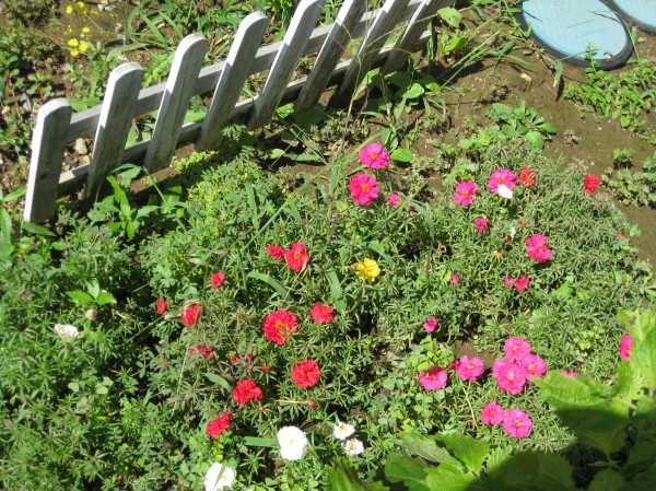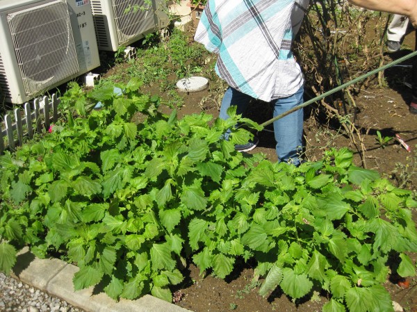 松葉ボタンは綺麗な花をいっぱい咲かせています。大葉が大きく育ちました。大きく成長しすぎかな?薬味にいいですね!!