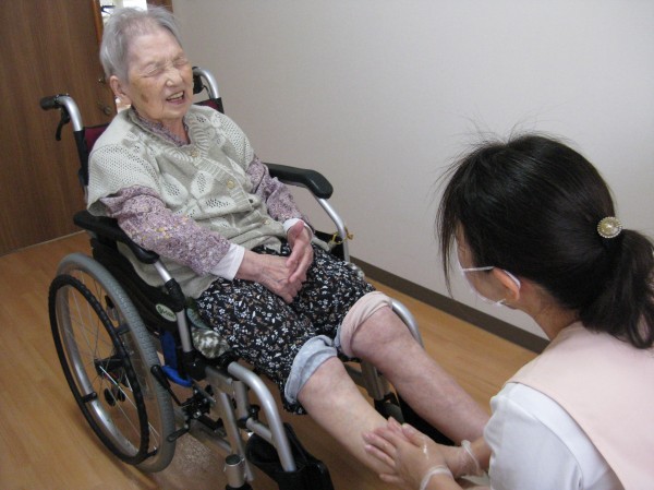 こんにちは!グループホームみんなの家・あきがせの介護ブログです。よろしくお願いいたします。今日は1名のシニアセラピー施術体験のご様子です!!