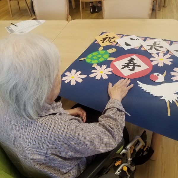 敬老会の飾りを作成する方。ソファーでくつろぐ方など様々です