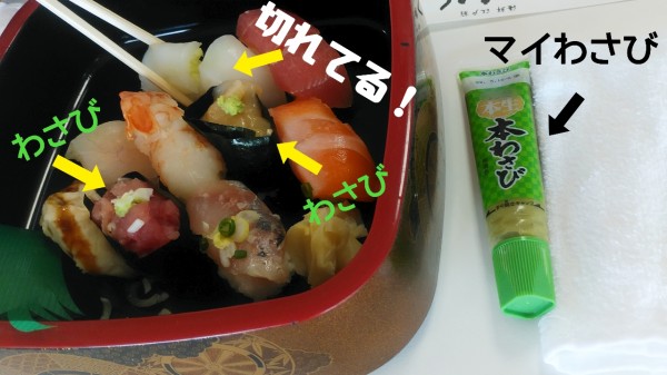 コレは!マイわさび!そして、半分に切れてるお寿司!?