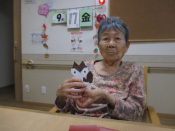 鶴の折り紙が上手なご入居者様にはたくさん作っていただき、秋の景色に利用しようと作成中です。