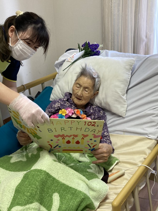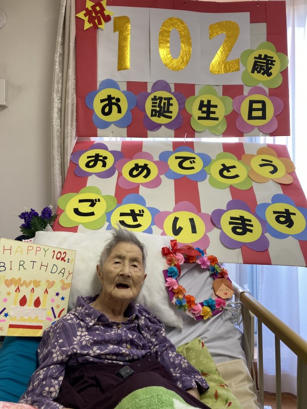今月の10日に102歳の誕生日を迎えた利用者様です。残念ながら六日後に逝去されました。