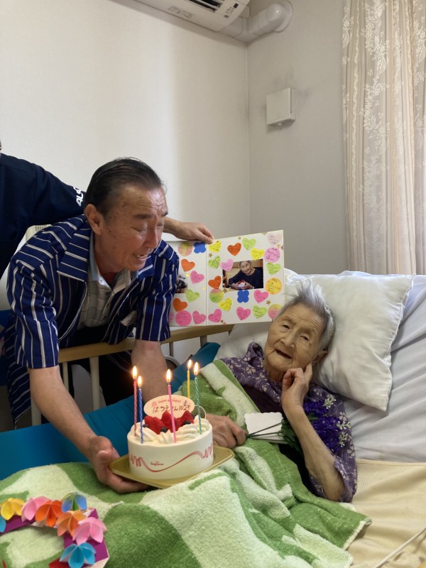 誕生日には息子様も面会されバースデーケーキでお祝いしました。可愛いポーズもして下さいました。