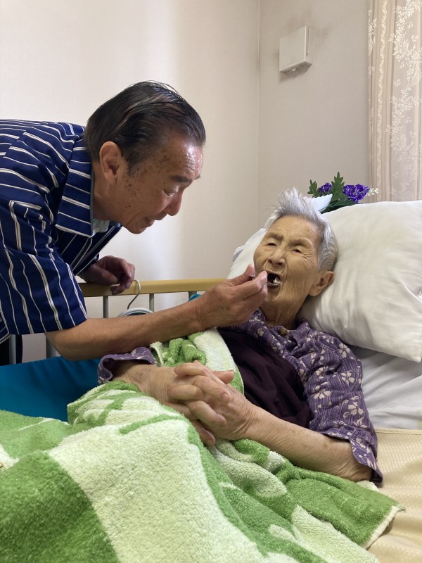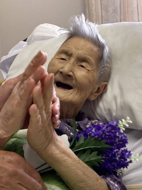 息子様の手を取り満面の笑みを浮かべた誕生日から6日後、眠るように安らかに永眠されました。職員一同謹んでご冥福をお祈り申し上げます。たくさんの笑顔ありがとうございました。(このブログは息子様の同意を得て掲載しております)