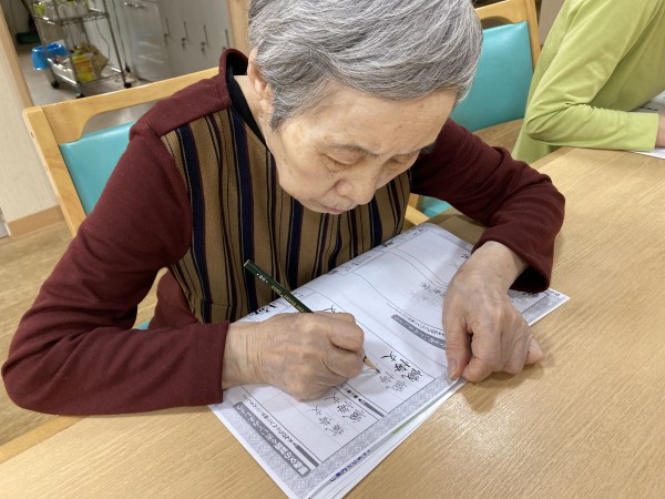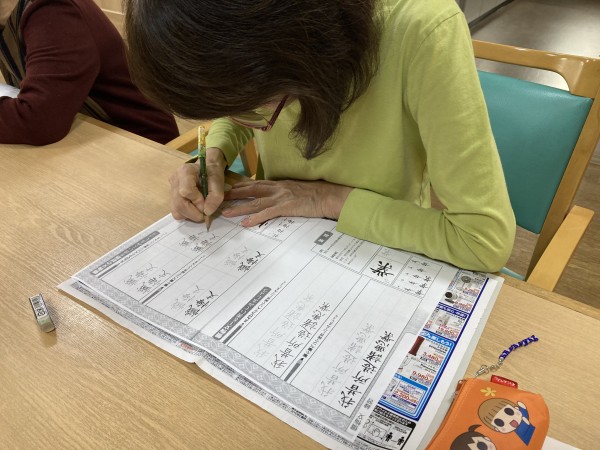 「難しい漢字ね」「うまく書けないよ」等、賑やかにお話ししながらも皆様真剣な様子でした。