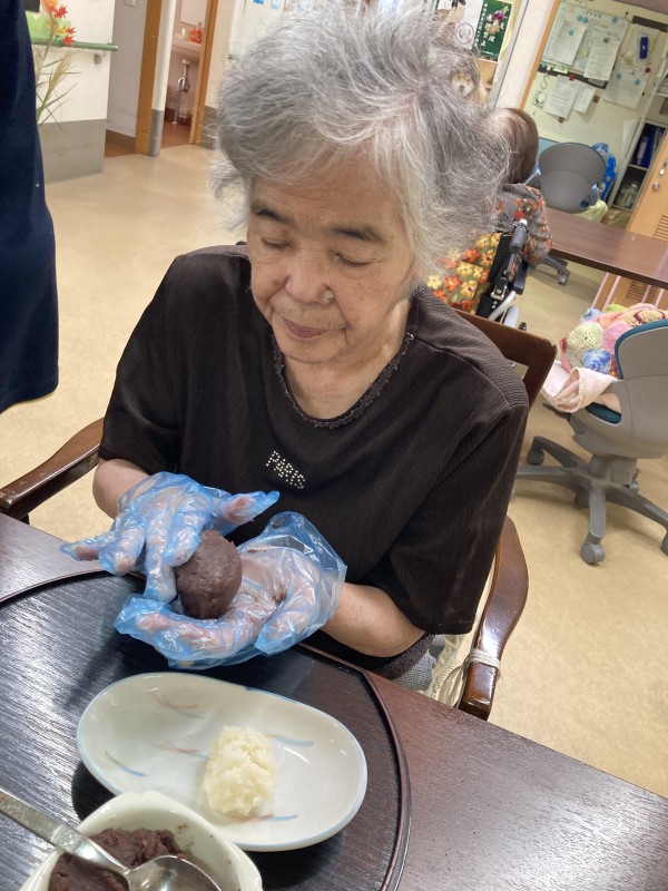 本日のブログは、二階の敬老会「おはぎ作り」をご紹介いたします。