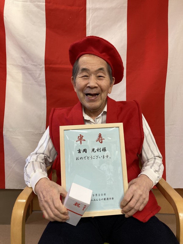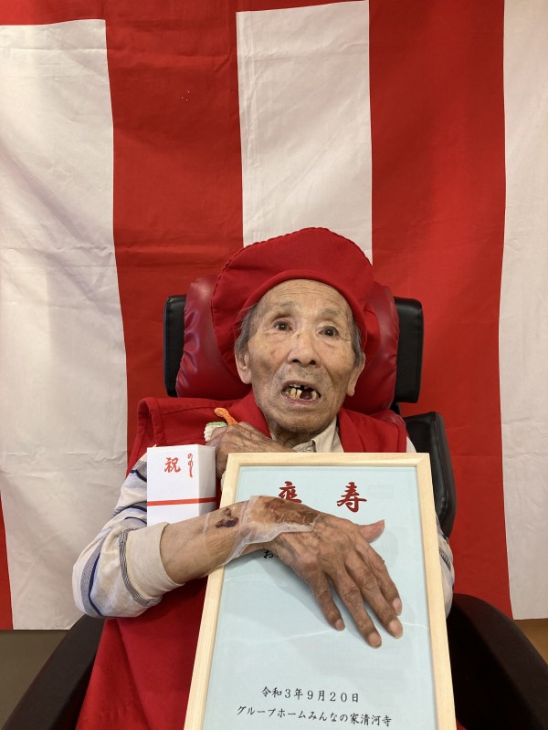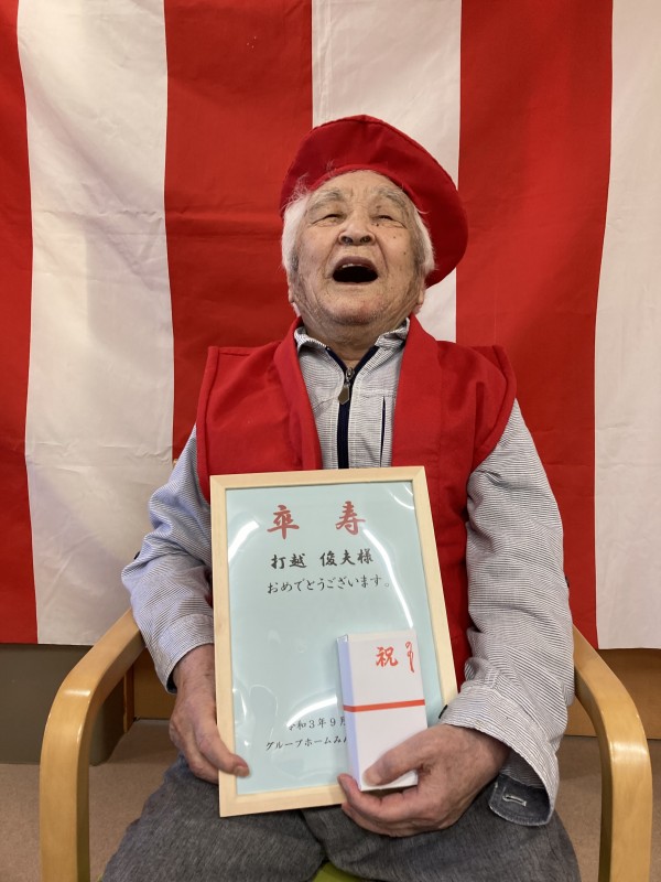 赤いちゃんちゃんこを着てお祝いさせて頂きました。