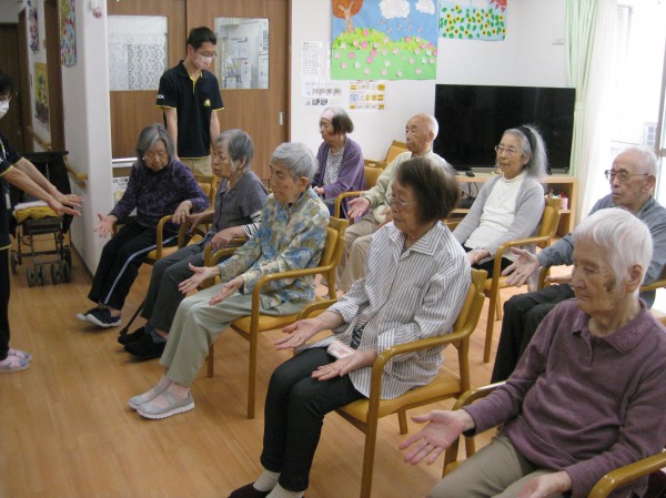 リモートでの体操が続いていましたが、今回は先生がホームに来て下さり、一緒に体を動かしました☆