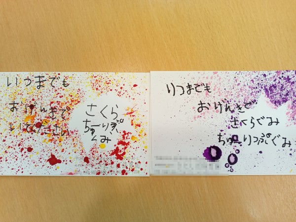近隣のきたしば保育園から、かわいいハガキが届きました。ありがとうございます!