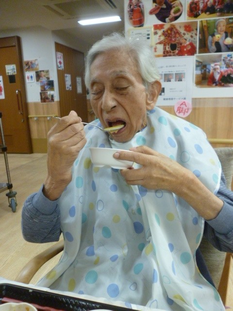 「本当においしいね」 「めったに食べられないよ」 「長生きするもんだね」 ・・・と、おしゃべりしながら楽しい時間を過ごされました。そして、デザートは人気メニューのフルーチェと今が旬の果物です!